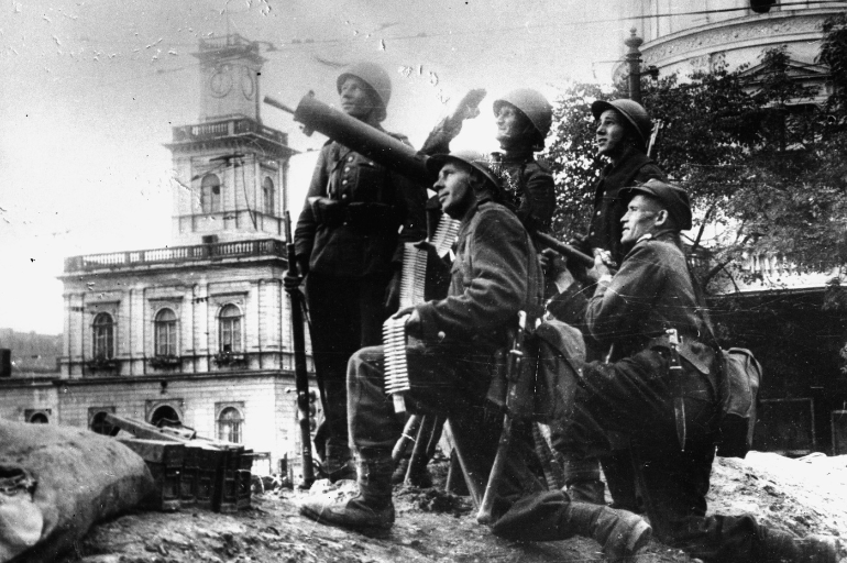 Żołnierze polscy z jednostki artylerii przeciwlotniczej w rejonie Dworca Głównego, podczas Obrony Warszawy w pierwszych dniach września 1939., Centralna Agencja Fotograficzna (CAF), wikimedia commons.
